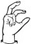 На ћирилици написано ЗОРАНА СКОКИЋ састоји се из 12 слова [?]. Исписано ћириличном једноручном азбуком за глувонеме: